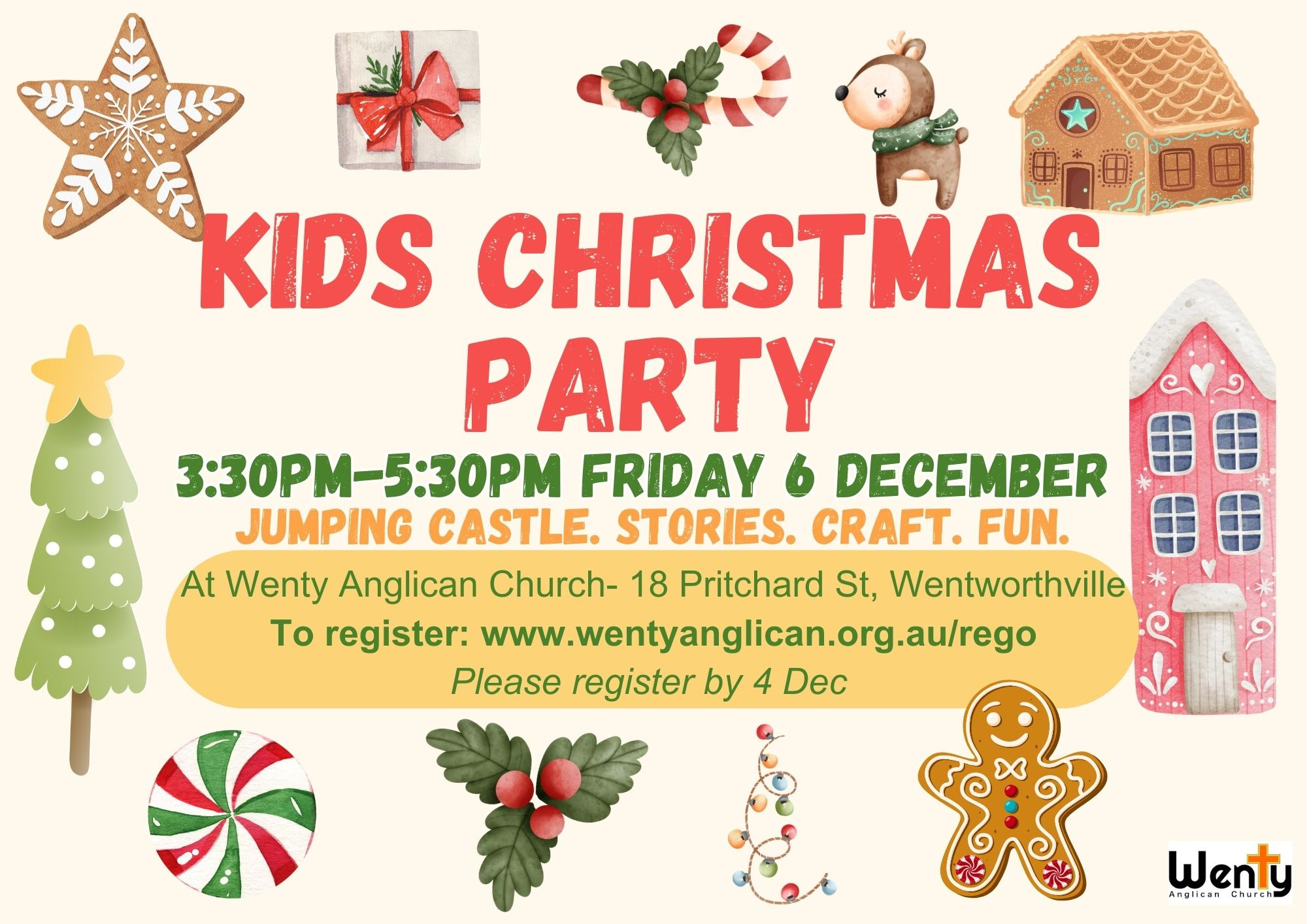 Kids Christmas Party 2024 Tickets, Wenty Anglican Church , Sign up now to be the first to get tickets and enjoy the dazzling illuminated light walk, festive house experience, santa’s grotto, delicious food and drinks from our traders, and live music.